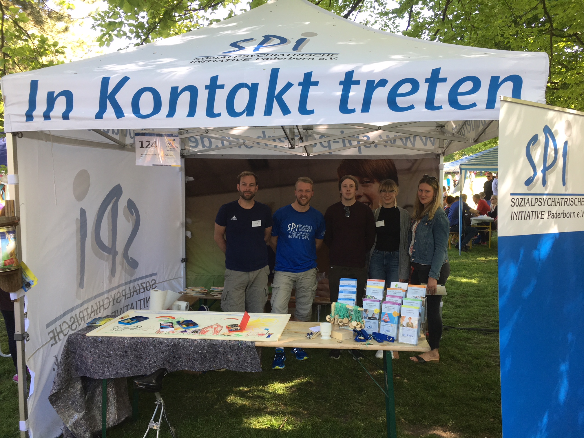 Ein herrlicher sonniger Kreisfamilientag am 06. Mai 2018 im Aabachtal in Bad Wünnenberg. Der neue attraktive Informationsstand des SPI Paderborn e. V. war Anziehungspunkt vieler Besucherinnen und Besucher, die sich über die Angebote des SPI informierten. Eine besondere Attraktion für Groß und Klein war das Ausmalen eine großen Puzzles und das Sägen eines dicken Baumstammes.