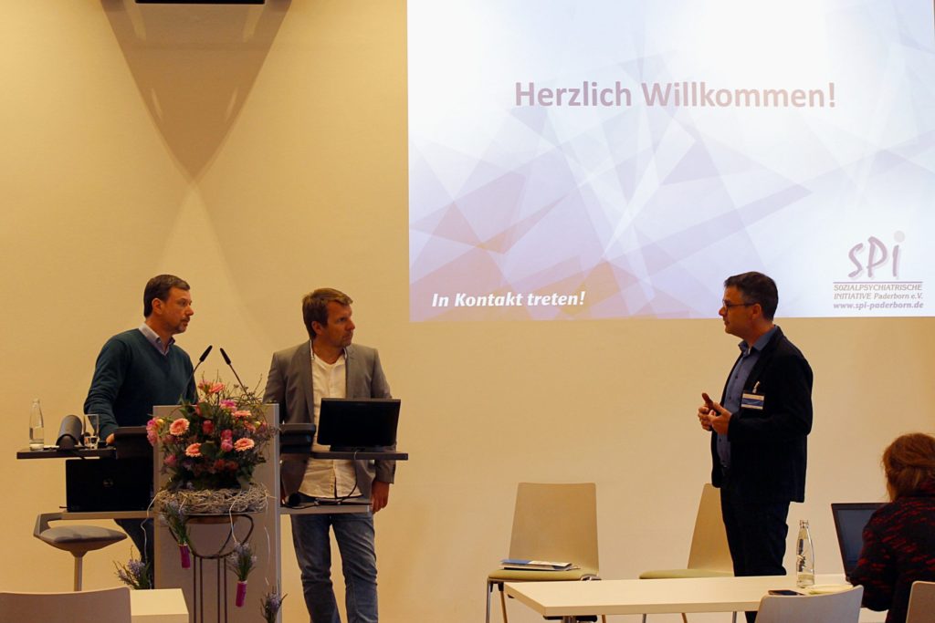 Der SPI Paderborn e. V. war gemeinsam mit dem SOS Kinderdorf Lippe und dem Kinderhaus Neumüller aus Delbrück Kooperationspartner der TransferWerkstatt. Die Leiter der stationären und der ambulanten SPI Jugendhilfe, Horst Goldscheck und Stephan Krause, erläuterten ausführlich die verschiedenen Angebote des SPI Paderborn e. V. im Bereich der Jugendhilfe. Das Besondere der Wohngruppen für Kinder und Jugendliche mit psychischen Erkrankungen sind neben tiergestützten pädagogischen Maßnahmen auch die implementierten pädagogisch-therapeutischen Programme wie zum Beispiel STEPPS (Systematic Training for Emotional Predictability and Problem Solving, zu Deutsch: Emotionale Stabilität und Problemlösen systematisch trainieren), die speziell für Menschen mit Borderline-Störungen entwickelt wurden. Darüber hinaus erklärten die Kollegen ausführlich das Präventive Familienschutzkonzept, welches im Bereich der ambulanten Jugendhilfe zur Anwendung kommt. Auch wiesen die Kollegen auf die sehr gut funktionierenden Schnittstellen zu den Jugendämtern, aber auch zwischen ambulanten und stationären Jugendhilfeangeboten hin.